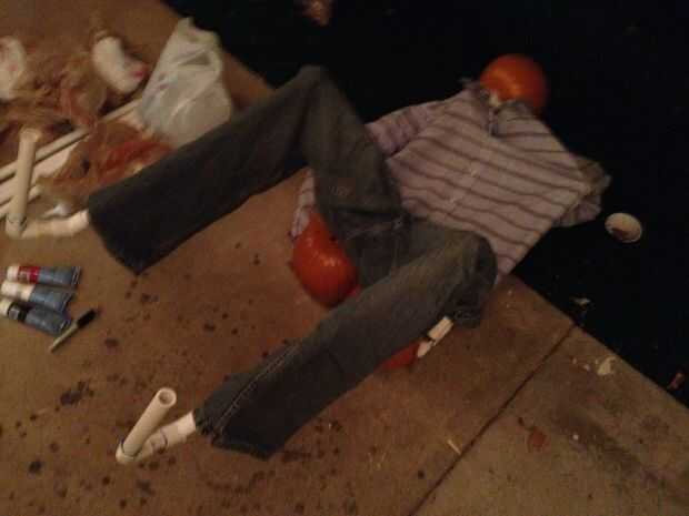 mi madre y yo no quería comprar uno de los espantapájaros cutres de Michael o Jo-Ann, por lo que decidimos diseñar y construir nuestro propio.  Utilizar PVC para el marco, así que es ligero y resistente al agua y lo rellenas de materiales de embalaje