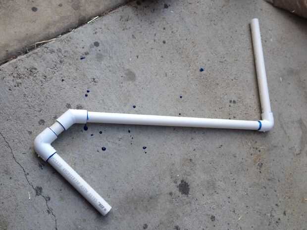 Colocar un codo de 45 grados en el otro extremo de la 14" pieza y lugar 3" pieza en el otro extremo del codo de 45 grados: