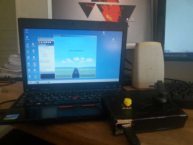 Este es un juego interactivo de electromecánico situado entre la electrónica y el mundo real, haciendo parte de la acción. Guardar usando un dispositivo de control de metas y patear la pelota con los dedos.Cuantos más jugadores mejor (hemos jugado 8