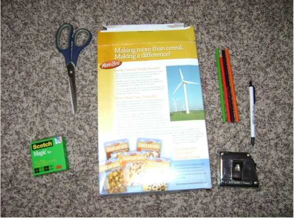 Lo que se necesita hacer de este proyecto es: Cartón Cinta Scotch Tijeras Algo a medida con (he utilizado una cinta métrica, pero recomiendo una regla) Algo de color (como lapices o marcadores) Pluma o lápiz (recomendado)
