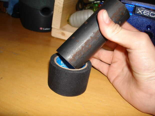 decidí colocar un anillo de cinta del hockey en la parte inferior de mi barra de acero, estabilidad, buena apariencia y fácil acceso.