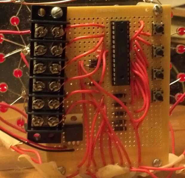 Una vez realizada la junta puede conectar las 8 líneas de charlieplexing a los pines del ATMega328 en su tablero principal. Tenga en cuenta que no debe tener el chip instalado cuando se suelda todo este material. Es decir, a menos que disfrutes comprando nuevos chips. Además usted no ha programado el chip pero de todos modos, ¿has?