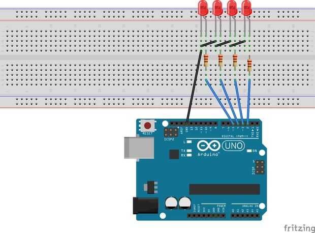¿Usted cada necesidad muchos LEDs, pero sólo algunos cables? Entonces Charlieplexing es una gran cosa para probar. Con sólo 4 cables que coche 12 LED con 4 resistencias una protección opcional y sin ningún componente "inteligente" como una 74595
