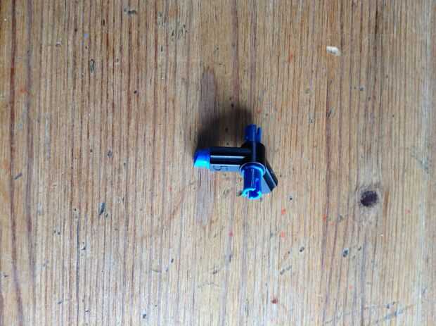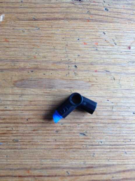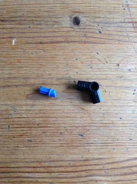 Va a necesitar cortar la pieza azul como tal. Usted puede entonces encajen. Luego poner una pequeña pieza azul a través del agujero en la pieza negra.