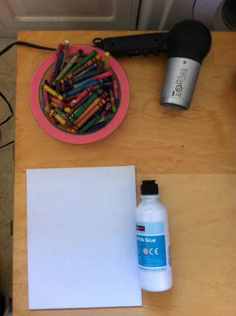 los ingredientes y de fusión arte Crayola!Paso 1: materiales * Creyones de Crayola (dependiendo de cuánto lienzo su uso, dice cuántas cajas de lápices de colores).* Jadeo lona (un 16 x 20 tiene solamente una caja de lápices de colores).* Secador de m