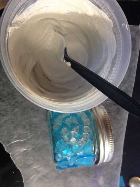 ANYHOO, una vez que tengas tu lechada mezcla utilice un cuchillo u otras herramientas pequeñas para manchar la lechada en su mosaico. Está bien para su adorno ya que usted a limpiar el exceso del rejunte apagado más adelante de todos modos. Usted quiere asegurarse de que obtener la lechada toda la pieza, en las pequeñas grietas y tratar de conseguirlo como incluso como sea posible para ahorrar tiempo más adelante (esto es también altura incluso piezas adhirieron al ayudará a su tarro).