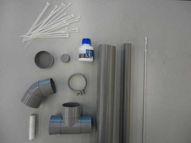 Se utiliza tubería de PVC ya que es un material muy común en la mayoría de las tiendas de hardware en el mundo. El tipo de tubo de PVC que utilizamos es el tipo que se utiliza para recoger agua de lluvia. Otra razón para utilizar PVC tiene que ver con la colección grande de acoplamientos diferentes disponibles. Usando el pegamento del PVC es muy fácil de experimentar con diferentes formas y tamaños.