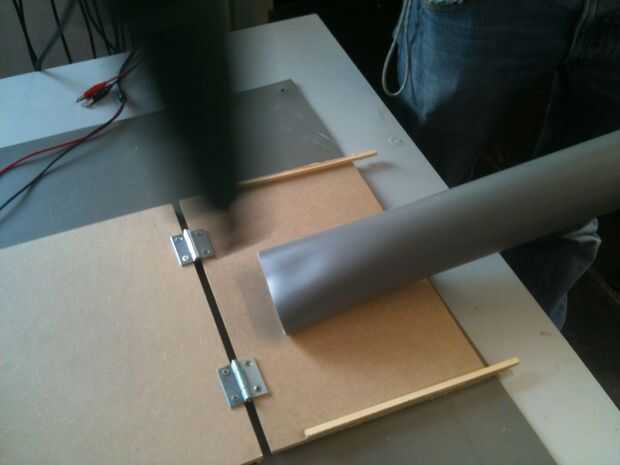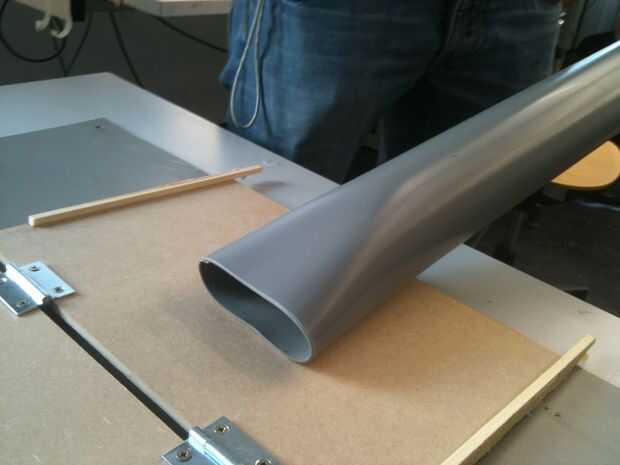 Para transformar el tubo de PVC en un casco de velero liso e hidrodinámico deforma el tubo usando una pistola de calentamiento (utilizada para quemar pintura y aislar conexiones eléctricas).