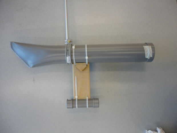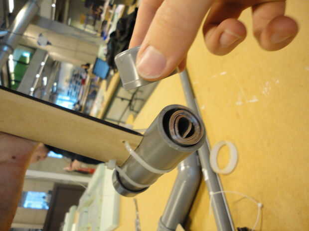 También experimentamos con el uso de una abrazadera de PVC para encajar la quilla, nuestra experiencia es que podría ser más robusto, pero también induce más fricción en el agua.