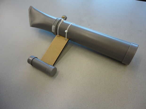 Utilice el pedazo más pequeño de PVC como recipiente para el balast, experimentar con la cantidad de peso y cola que la tapa de extremos con cemento de PVC. Utiliza una hoja de plomo de unos 350 gramos y había rodado para arriba (ver fotos).