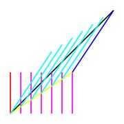 Desde el punto de intersección de las líneas azul, amarillo y Magenta, copia/matriz de la línea azul a cada punto de intersección de Magenta y amarillo. Esto crea las líneas azules que se muestra a continuación.