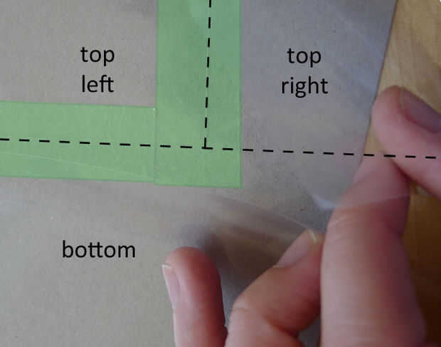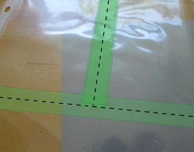 Encintado de sus secciones puede ser complicado si tiene cortes verticales. Empezar con las secciones que están en la izquierda de la página y todos sus bordes de cinta hacia abajo sobre la hoja inferior del protector de la página. Trabajar su camino derecho, grabando cada sección en la parte superior las secciones previamente grabadas.