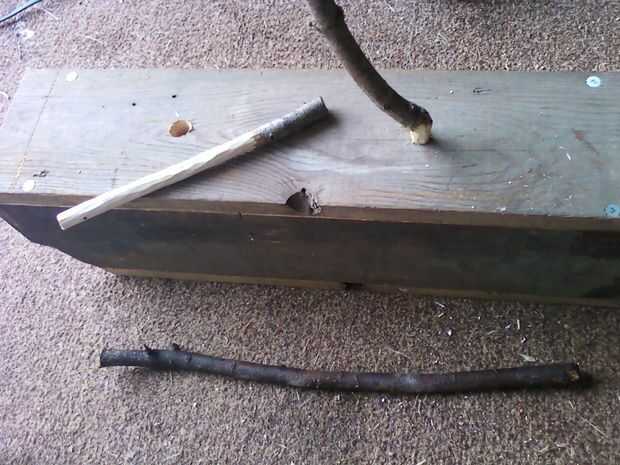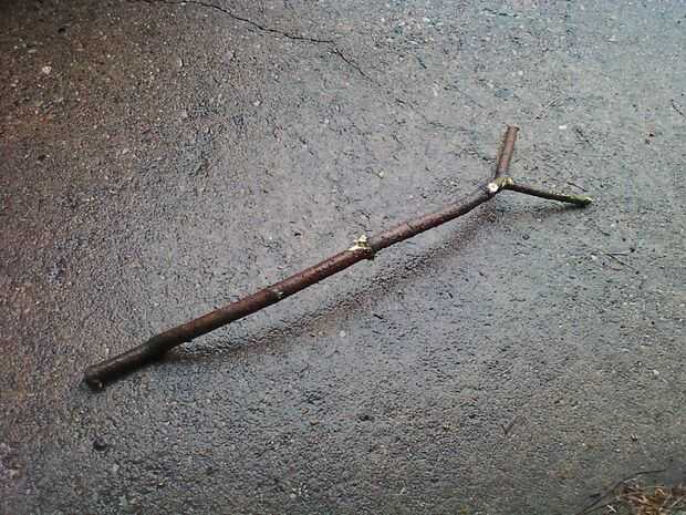 1. un palo bifurcado, en forma de Y. Debe ser aproximadamente 1/2 pulgada de diámetro, aproximadamente 18 pulgadas de largas y un poco Lacio.