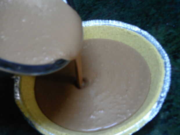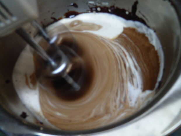 Paso 7: Doble mezcla de chocolate a la mezcla de látigo y verter en la tarta