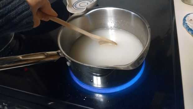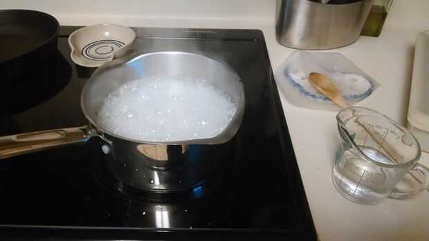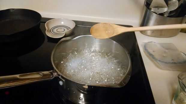 Si no se usa un termómetro de caramelo, se debe probar de vez en cuando dejando caer parte de la mezcla en un vaso de agua fría hasta que haga la bola firme. Recuerde que el jarabe de azúcar hace una bola, pero se aplana cuando aplastado.