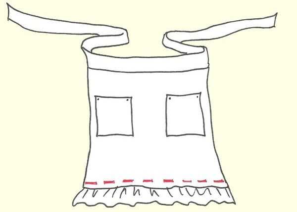 aquí es algo inusual.  Un delantal con solamente un lado.  Y un agujero.Lo bueno de esto es, no tienes que atarla.  Solo lo pones en.  Me gustan los tirantes más amplia y el hecho de que no está colgando alrededor de la parte posterior de su cuello.