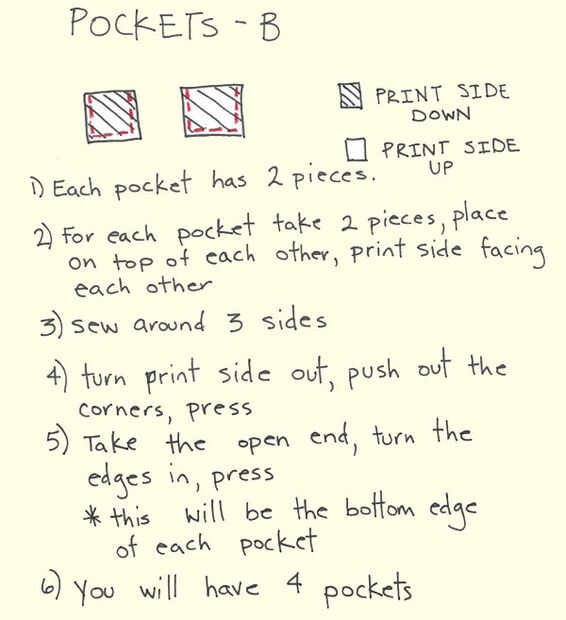 Lo que necesitarás:-3/4 yarda de blanco parte inferior tela de peso-4" retazos de telas de diverso patrón 6 huevos (algodón)-1/4 yarda de una tela para los bolsillos de la cesta-1/2 yarda de la cintura banda de tela (algodón)-4" de entretela fus