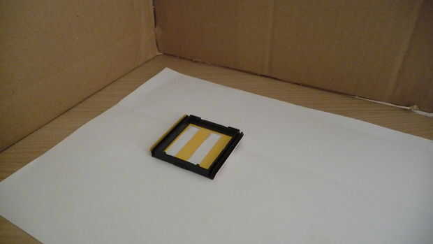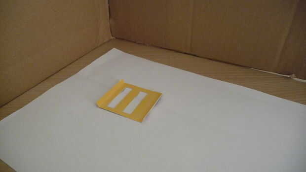 Una vez la máscara de papel tenemos que cortar los 2 bares donde la película se quedará impresionada. Puesto que la estructura es de 4 centímetros de grande, corte rectángulos de dos 4 × 1 cm. Tenga en cuenta que los agujeros de la máscara será grande 1 cm.