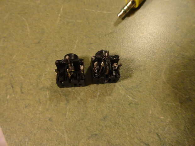 El gato macho, la punta es la señal de audio izquierda, el medio es la señal correcta y la espalda es el suelo.