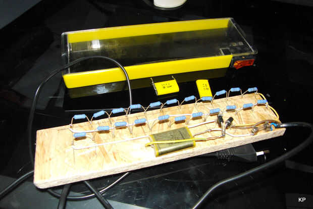 Prueba fue hecha en aglomerado---pero tengo hecho un cuadro adecuado... claro de 4mm de Plexiglas (Lexan). 522 voltios no son una broma... Color es también una cuestión de gustos...
