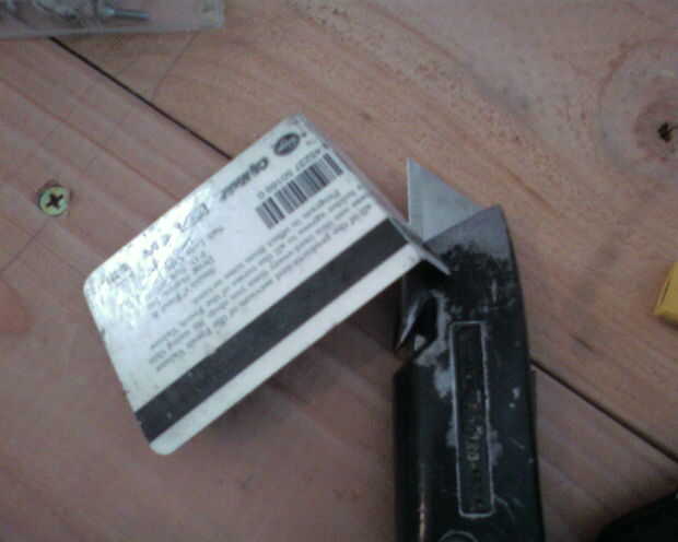 Anotar la tarjeta con una maquinilla de afeitar y un borde recto permiten un buen corte. Asegúrese de utilizar un cuchillo afilado, pero tenga mucho cuidado corte con una navaja de afeitar. Dale la vuelta y cortar a través de todo el camino. Lije los bordes con papel de grano fino si lo desea.