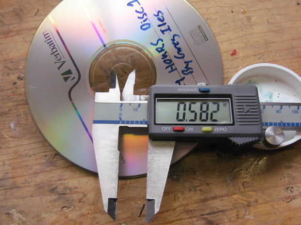 La diferencia de tamaño es la cantidad de material que tendrá que sacar el CD. En mi caso fue 47/100ths de una pulgada. Doblé a la mitad una pulgada.