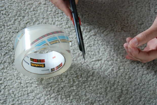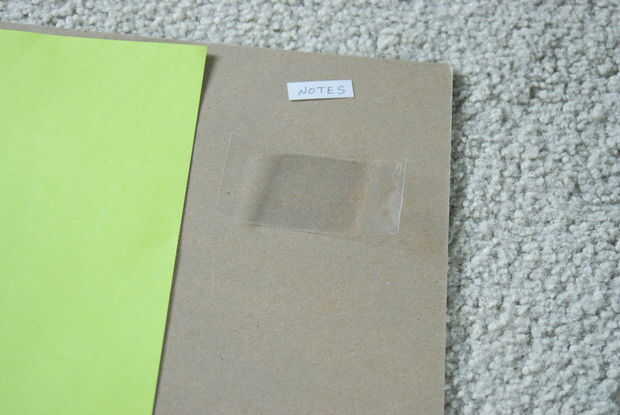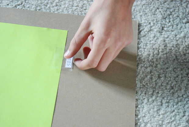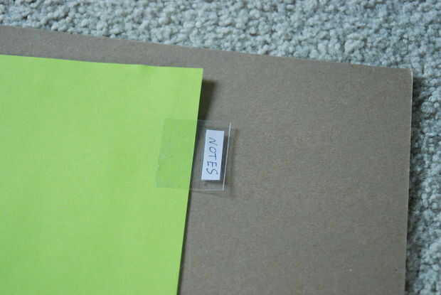 Arranque por corte de un pedazo largo de 3 pulgadas de cinta. Luego coloque esa cinta alrededor de una pulgada hacia abajo desde la parte superior derecha del papel. A continuación poner su etiqueta donde desea que sea y pegarlo abajo. Finalmente doblar la cinta asegurándose de no obtener pliegues y pegarla hacia abajo.