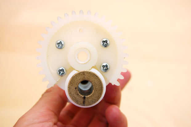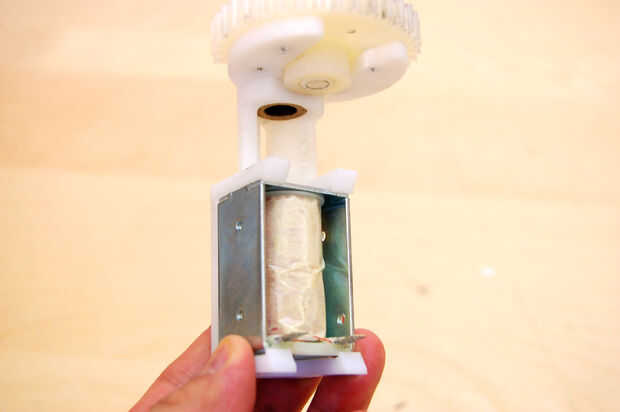 1. Saque 90 grados el último engranaje de nylon para que quede en la base del solenoide.