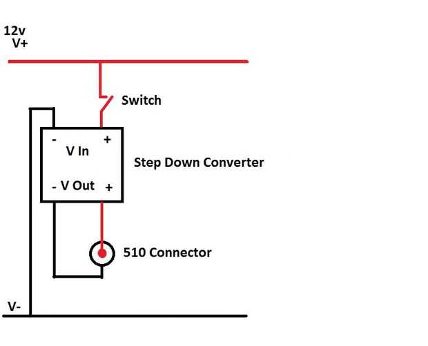 Ahora conectar el + y - salida del convertidor para el + y - del conector 510 (positivo es el pin interno).