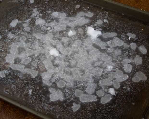 Añadir alcohol de 90-100% isopropílico (frotando alcohol, aditivos para combustibles, etc.) a hielo seco hasta que se forme un lodo. Esto reduce la temperatura de congelación del hielo seco por debajo de-100 grados Fahrenheit. Está cerca de nitrógeno líquido, para que pueda utilizar esta mezcla para quemar las verrugas también. A diferencia de nitrógeno líquido, este material no se evaporará simplemente al tocar la piel, se adhieren como pegamento. Así que mucho cuidado. Mezclar en un recipiente aislado en una zona bien ventilada y con equipo de seguridad adecuado.