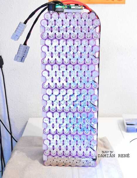La construcción de un paquete de batería 48V 42Ah 13s15p 18650 litio-ion células. Hecho de 10s4p rechazado Bosch paquetes. - 13 serie, 15 paralelo 2850mAh 2C max LG 18650 células de iones de litio.-punto soldado con autógena 0.15 mm x 7 mm tiras de níquel puro 99%. - 30-60 amperios BMS.-12 AWG cables.-230mm de diámetro batería Shrink Wrap-12V - 48V - medidor de batería configurable (2s-14s). 50A conectores anderson para carga y descarga * actualización: finalmente está probando la batería. Fue inesperado que incluso no puedo notar realmente carga tocando en él. Carga a la misma temperatura de la habitación a 0,15 C (6A). Tasas de descarga entre 10A - 20A no llega también a calidez (máximo 0,5 C). Cargador (ventilador incorporado) se calienta bastante durante la fase CC (~ 5 horas) y luego caliente solamente en información de rendimiento de phase.*For EV CV: prueba 100 Km de paseo de la prueba de tortura mixta (cuesta arriba cuesta abajo rush, aceleraciones y lento downs, acelerador a mitad el rode, velocidad entre 20-25 mph, todo por la noche con bombillas de 15W reales) entonces batería voltaje mantenido en 48.1V que hace un todo 200 KM de la gama de consumo más de noche. (EV no es incorporado accionado humano)