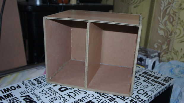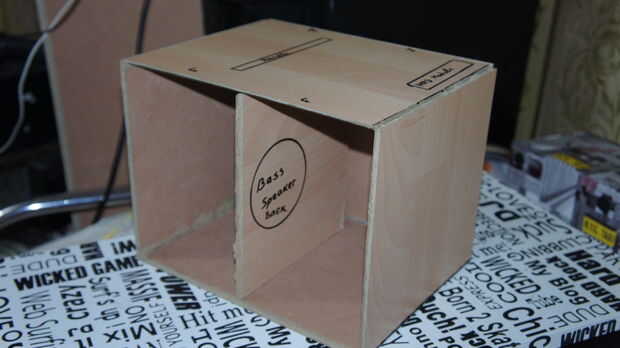 No voy a entrar en muchos detalles de cómo hacer una caja de madera, yo solo voy a explicar lo que tienes que hacer. Por supuesto este modelo se basa en la mina, que como dije voy a actualizar y remodelar tal vez algún día. Honestamente es muy bonito modelo considerando bajo sonido / aislamiento de sonido de altavoz izquierda y derecha de los bajos / y un total de tamaño de la caja. Hay un montón de cosas que puedes decidir hacer diferentemente después de explico todo, por lo que no te interese el tamaño de mi caja. La caja en las fotos es lo que básicamente necesitas hacer, es una simple caja con una pieza extra interior dividiendo el cuadro 2, donde utilizas 1 lado el espacio de bajo y un lugar para poner un módulo MP3 y el otro para el altavoz izquierdo y derecho, baterías, módulos de carga y amplificadores (hice ese modelo rápidamente de azulejos de piso de madera para chicos mostrar lo que tienes que hacer). Recomiendo el uso de madera ya que es el mejor para dispositivos de audio, algo no demasiado finas y no demasiado gruesa, tal vez alrededor de 5mm a 1cm. Y después de hacer tu caja si su uso algunos chatarra madera o simplemente no gusta cómo se ve o como la apariencia de algún tipo de vinilo se puede poner el vinilo después han decidido donde todo va a estar y te ha hecho los agujeros para todo y antes de poner nada en la caja.