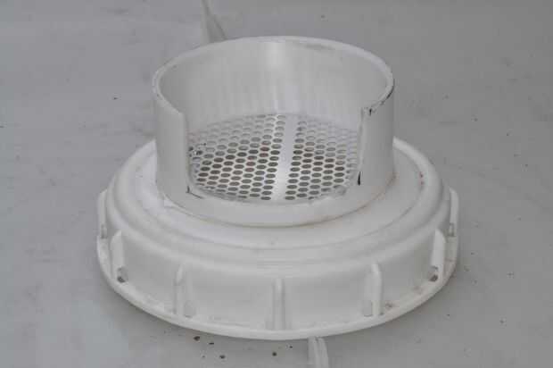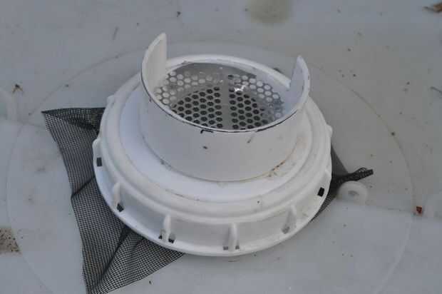 Para evitar que artículos grandes fuera del tanque de almacenamiento de información, necesitamos a algún tipo de pantalla. Ya que teníamos algunos aluminio "-protector del canal" alrededor, nos remonta a la 4" casquillo de la pipa sobre la misma con un marcador y el corte del interior de la línea con unas tijeras. Entonces teníamos un círculo de aluminio que encajan el casquillo de la pipa y descansaría en el borde interior. Enchufables en lugar muy bien, pero podrías añadir algún sellador para que sea más permanente si desea.