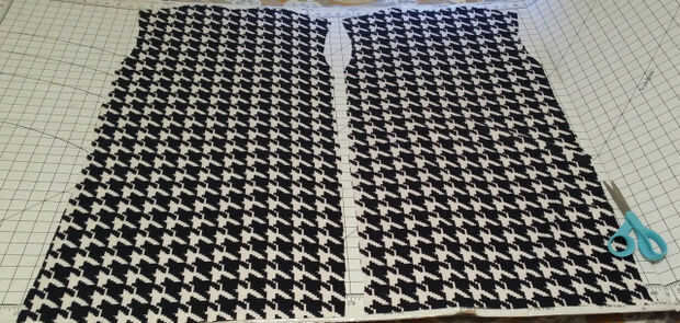 Ahora doble a la tela por lo que usted puede cortar su segunda pieza. Coloque la pieza 1 que corta en la parte superior y corta alrededor. Sin costura subsidio es necesitada.