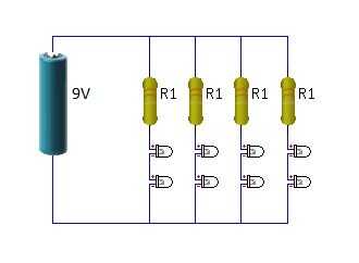 Como se puede ver en la foto #1, tenemos que conectar 4 par de LEDs en paralelo; así soldar una resistencia a un par de LEDs y repite este proceso cuatro veces.