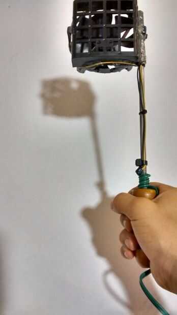 Por último, pegué caliente el ventilador para el mango de un paraguas.