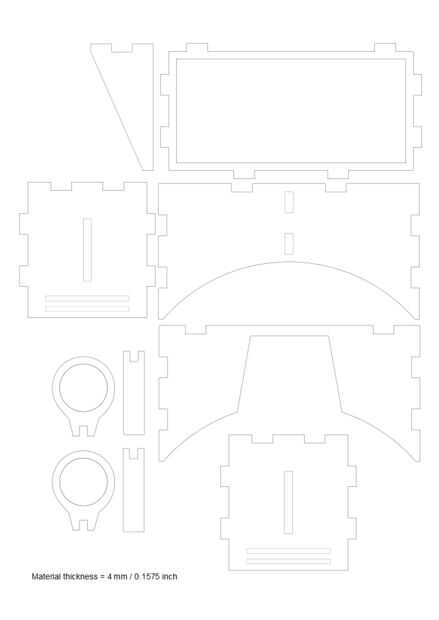 Usando Inkscape y un plugin llamado Fichas caja Maker hace primero una caja. Entonces miré el modelo 3d y modificar el cuadro en Inkscape.He subido tres versiones.