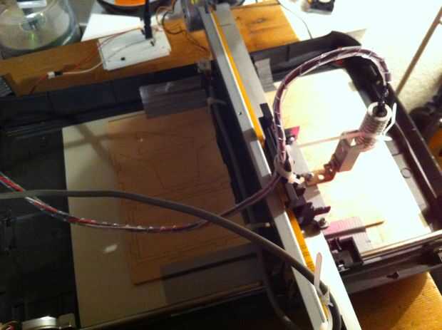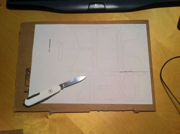 Al principio que traté de usar mi grabador del Laser para cortar a través de 4mm cartón de TV set pero se dio cuenta que 300mW son débiles incluso cortar a través de la primera capa de cartón.