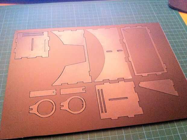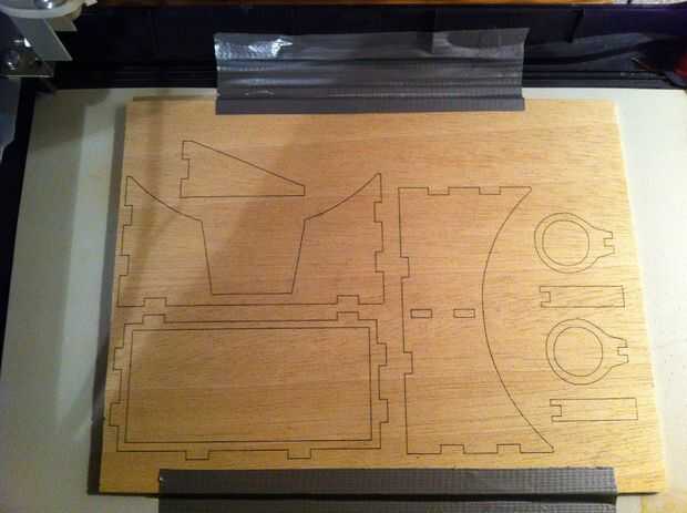 El resultado fue bien pero no satisface. El láser podría cortar a través de la hoja pero toma algo para siempre. A una velocidad de 400mm/minuto puede grabar agradables líneas finas. 50mm por minuto cortes de 1mm en el material. He intentado 20mm por minuto en una carrera pero cortar sólo 1-2mm. Supongo que varias carreras 50 m m por minuto podrían cortarlo pero que sería una tortura para el láser.