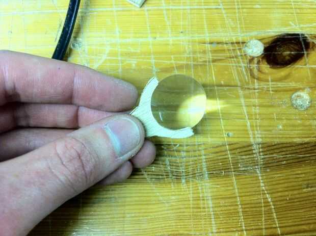 Las lentes fueron sujetadas con una pistola de pegamento caliente.