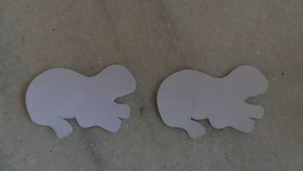 Primero seleccionar una imagen de conejo simple e imprimirlo. Trazar en el tablero de tarjeta sin orejas y cola.