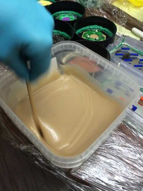 • Después de un hour(ish) será lo suficientemente firme para tocar pero ser paciente y dejar reposar las 16 que horas se recomienda. (21' Celsius es la temperatura óptima para mezclar, verter y curar)