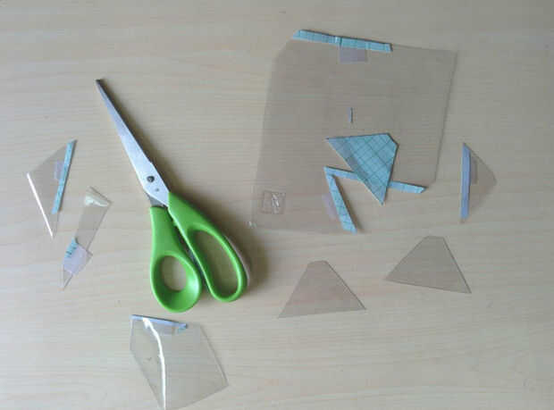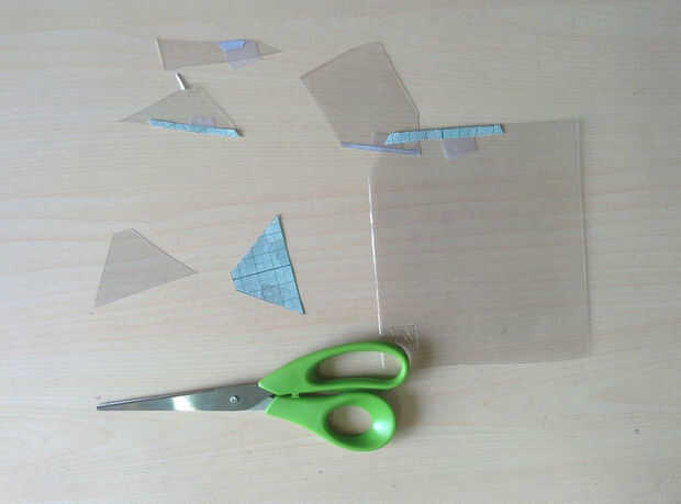 Usé una caja de plástico transparente para hacer las superficies de la pirámide.