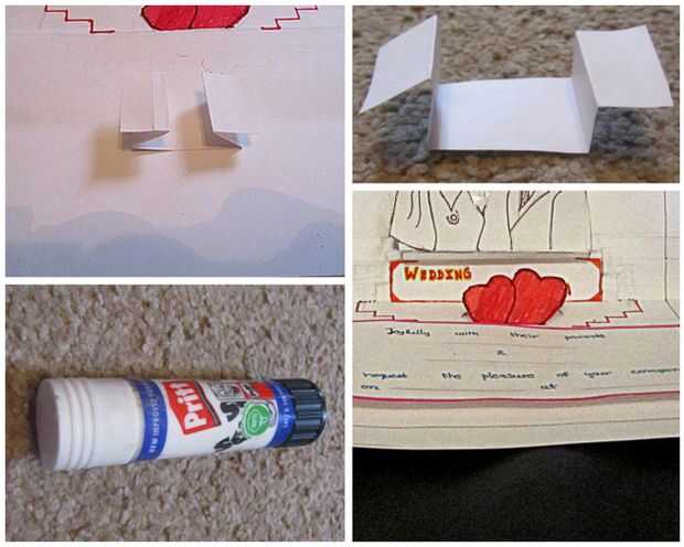 Porque para lograr esto, usted necesita doblar un papel grueso rectangular como un banco (véase la imagen de arriba). Luego, coloca el papel doblado hacia abajo y péguelo en el lugar donde irá nuestra invitación. Ahora, coloque la invitación sobre los extremos doblados y unirlo todo. Finalmente, hemos dado nuestro invitan a una mirada elevada.