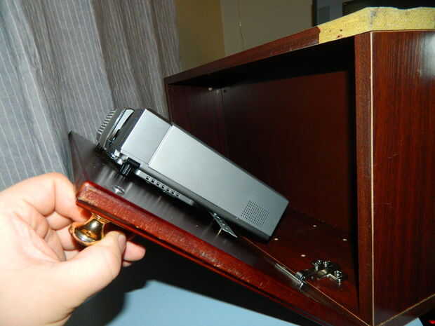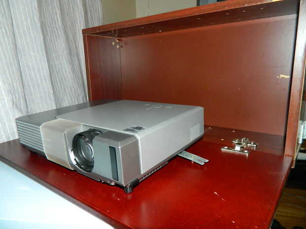 Tenía la idea más simple para montar el proyector en el estante, tenía que ser ligero y ajustable de lado a lado y arriba y abajo, y el proyector tiene que sacarse con facilidad y hacen la instalación fácil y limpia. simple.