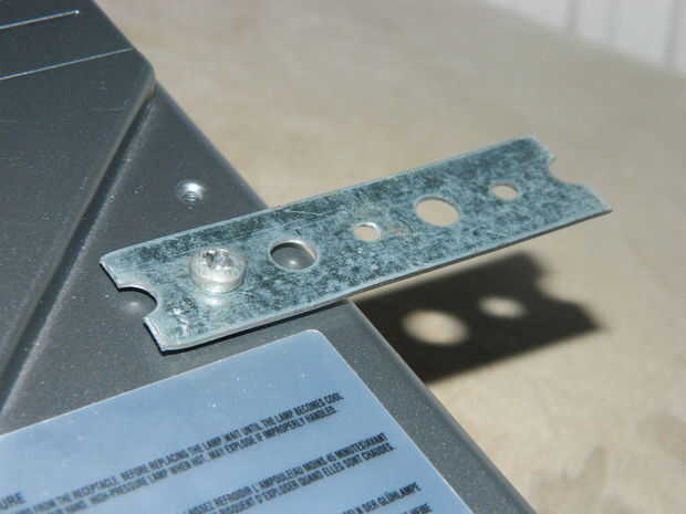 Y lo sabes. ¡ Es! Solo cortar unas pocas pulgadas de la tira de plancha que tiene agujeros de los tornillos y listo. Después de instale en la parte inferior del proyector. (Fig. 2) En la parte inferior de los proyectores hacia panel instalación tornillo que encaja en él para que pueda ajustar el para arriba y abajo el ángulo del proyector. (esto puede también ser hecho de Pentecostés la tapa del estante por so la longitud de las cadenas.)