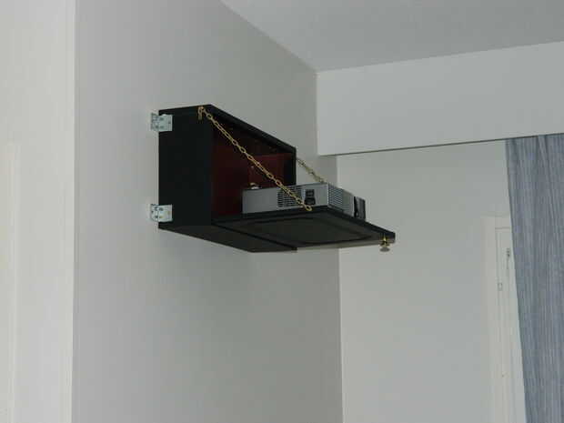 El proyector en las 3 últimas fotos está instalado en la tapa. Todavía falta cables en la foto, así que asegúrese que los cables hay y en preparan antes de instalar el proyector. Confía en mí, será 100 veces más fácil de esa manera.