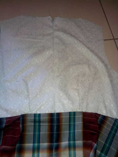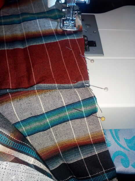 3. según el margen de costura de la puntada. Tenga cuidado de poner el lado bueno y el lado grueso de la tela.