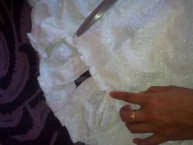 3. corte trozos pequeños cada 1 pulgada. Tenga cuidado de no cortar las puntadas