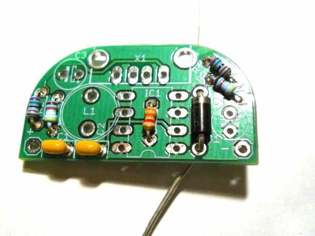 1. Ubicación D1, inserte el componente negro con la raya de plata.